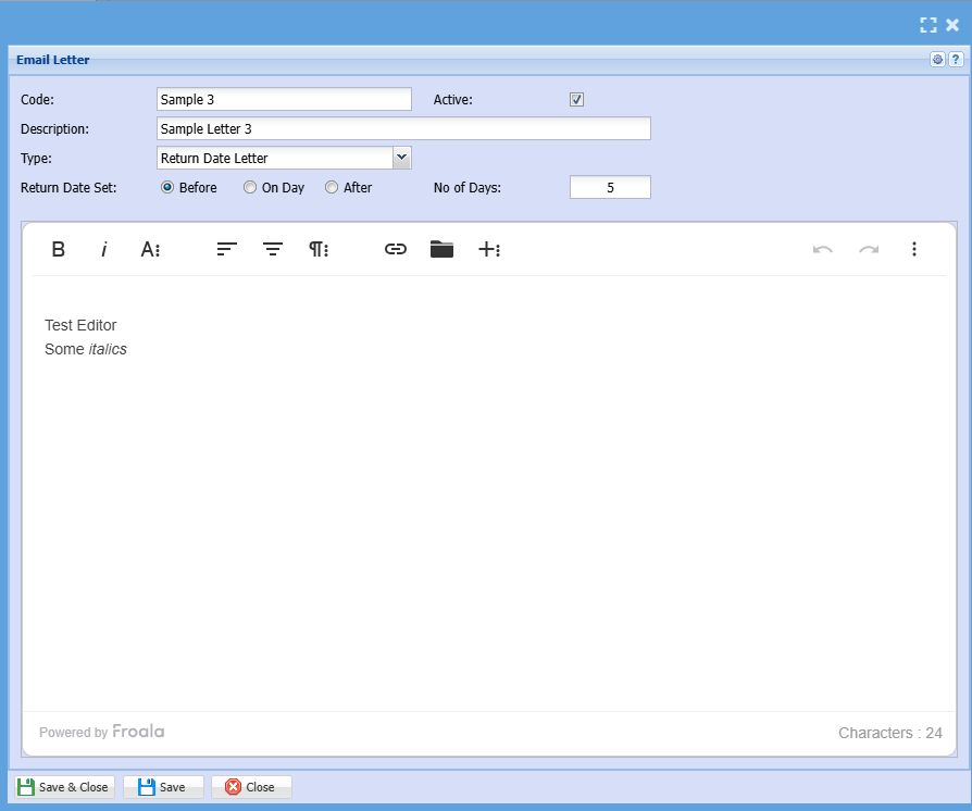 The Email that is sent out must be embedded into the email with the Description of the Letter for the Header of the email.