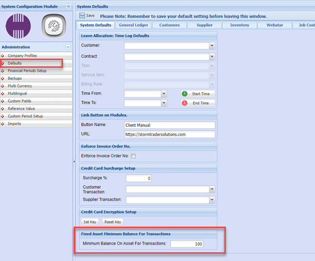 Check minimum balance for transactions is setup