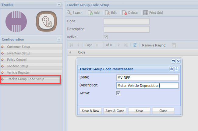 Setup TrackIT group codes in order to group fixed assets together on one journal
