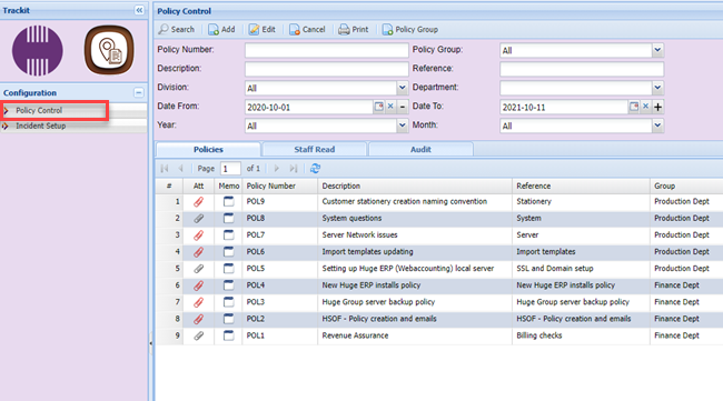 Policy Control setup