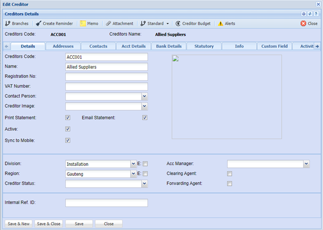 Edit Creditor