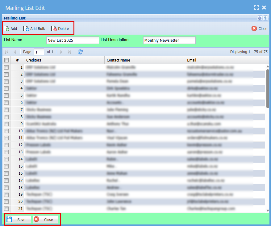 Add Creditors Email Mailing List