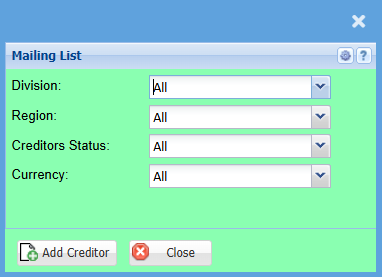 | Add | Add button opens up Creditors setup function that allows you to select from your supplier contact the email to add on the list. |