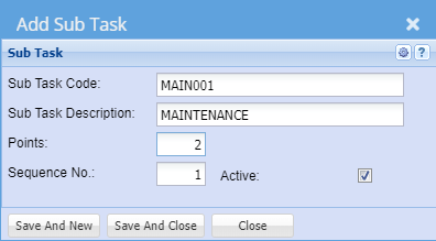 | Sub Task Code | Enter a Sub Task Code |