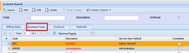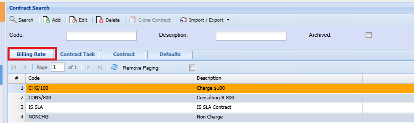| Archived | If the archived box is ticked, the billing rate will be achieved |