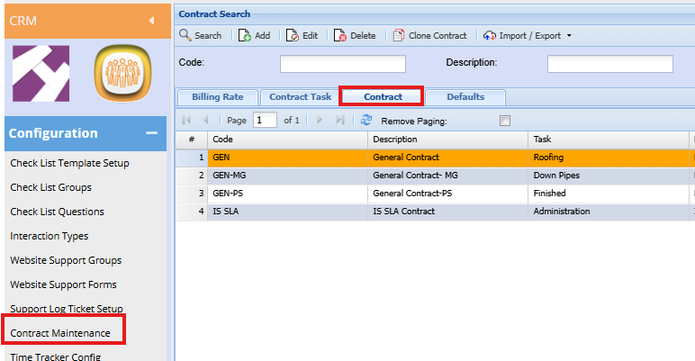 | Contract | Default contract. this can be set per user on the user profile setup as well |