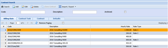 | Archived | If the archived box is ticked, the billing rate will be achieved |