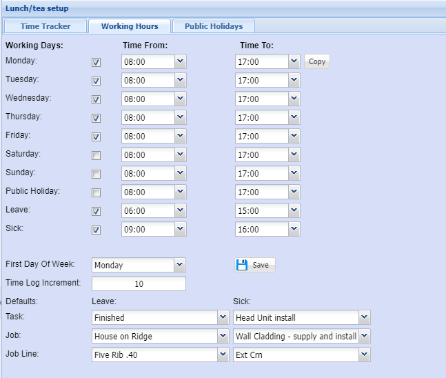 Allow the user to set up different start and end times for Lunch/tea.