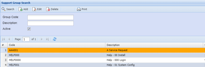 If no filter options are selected all Website Support Groups records are displayed on the gird.