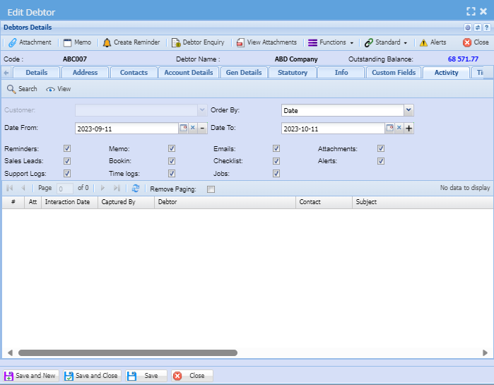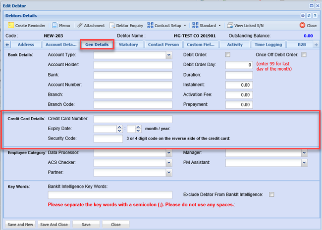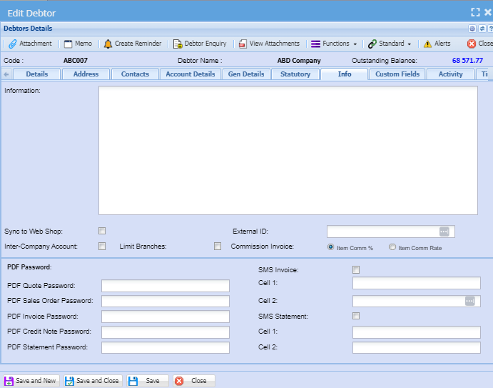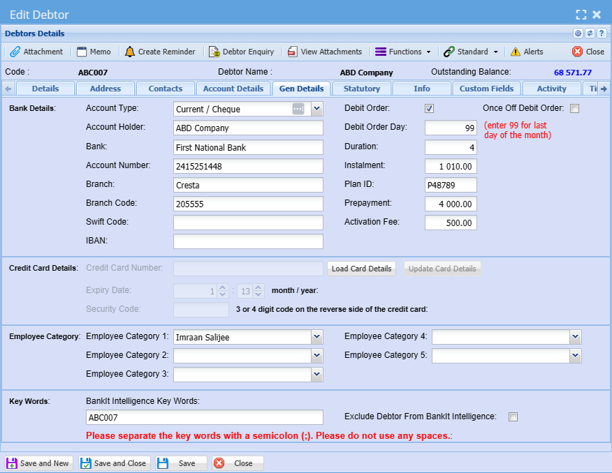 After adding all information about a debtor or customer always remember to click save.