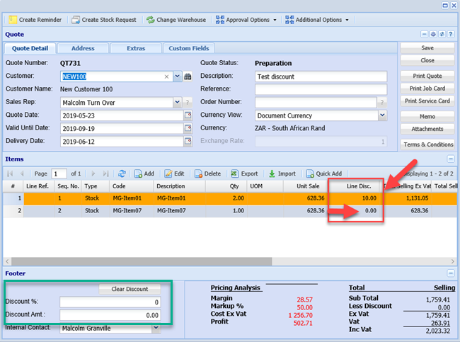 If you don't wish for a specific item to be included in the line discount you need to add a tick to No discount
