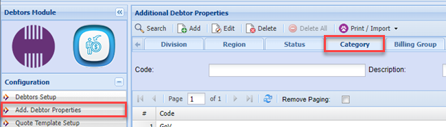 AdditionalTo Debtorbe Propertiesable to select a category from debtor setup or to update debtors import the category needs to be created first