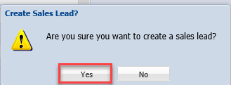 You need to click yes to create a sales lead and