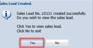 When you click yes it will take you directly to the created sales Lead