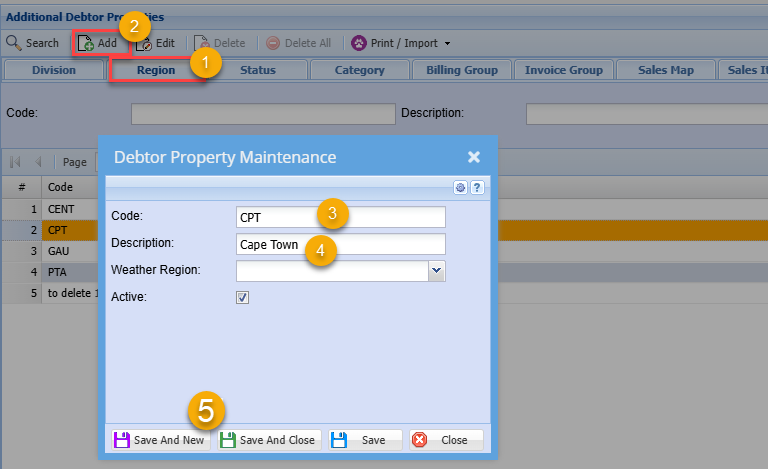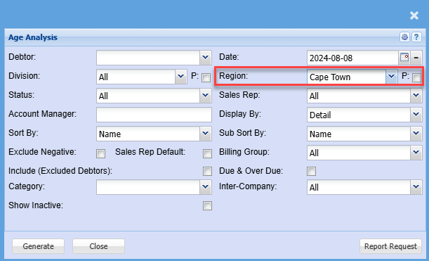 This now sets the default properties on this debtor and when capturing transactions, the user does not need to remember to select the Division/ Region