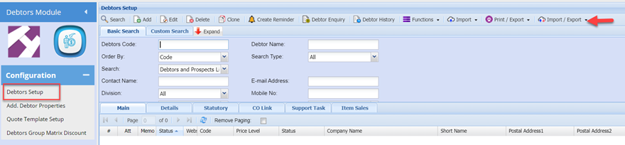 Select: Debtors Import / Export