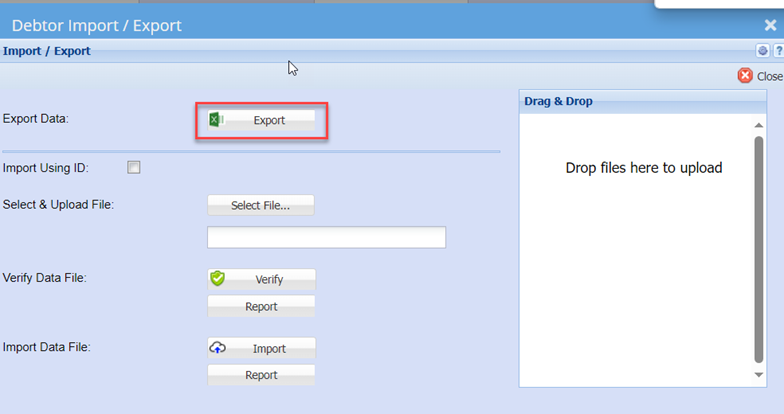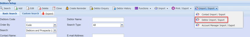 - Select Debtor/Customer Import/Export