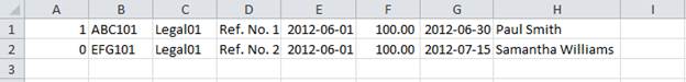 The import file needs to be a CSV file (Comma Delimited File) as illustrated below. Click on the Browse button and navigate to the location of the file to be imported. Select the file and click on Open. Click on Upload and follow the screen prompts. If there are any errors in the import the resulting report will display the problematic data in the import file. |