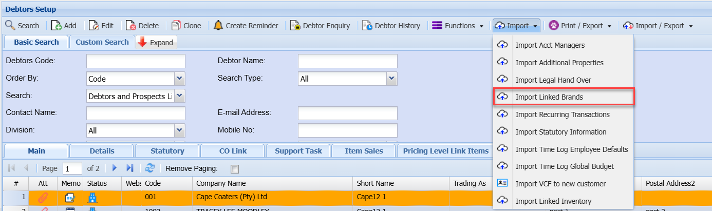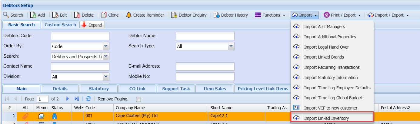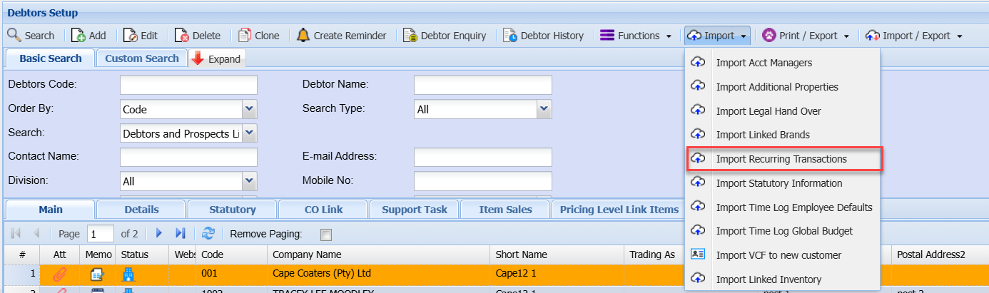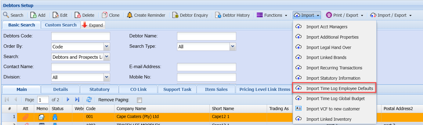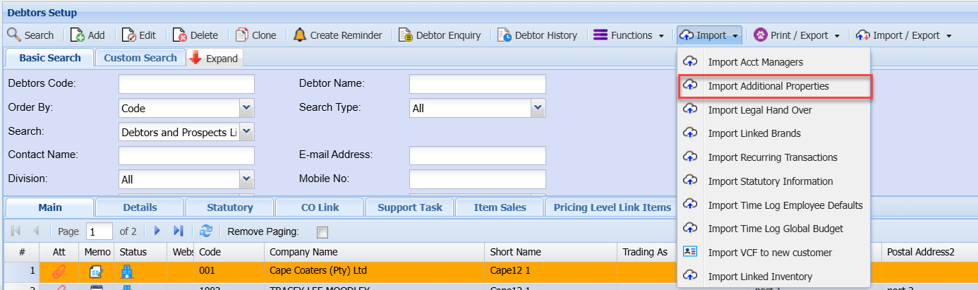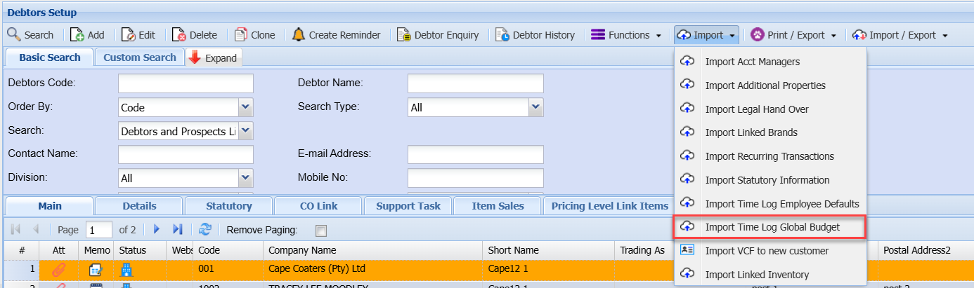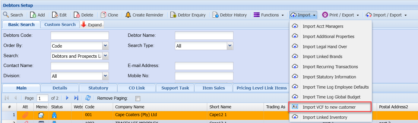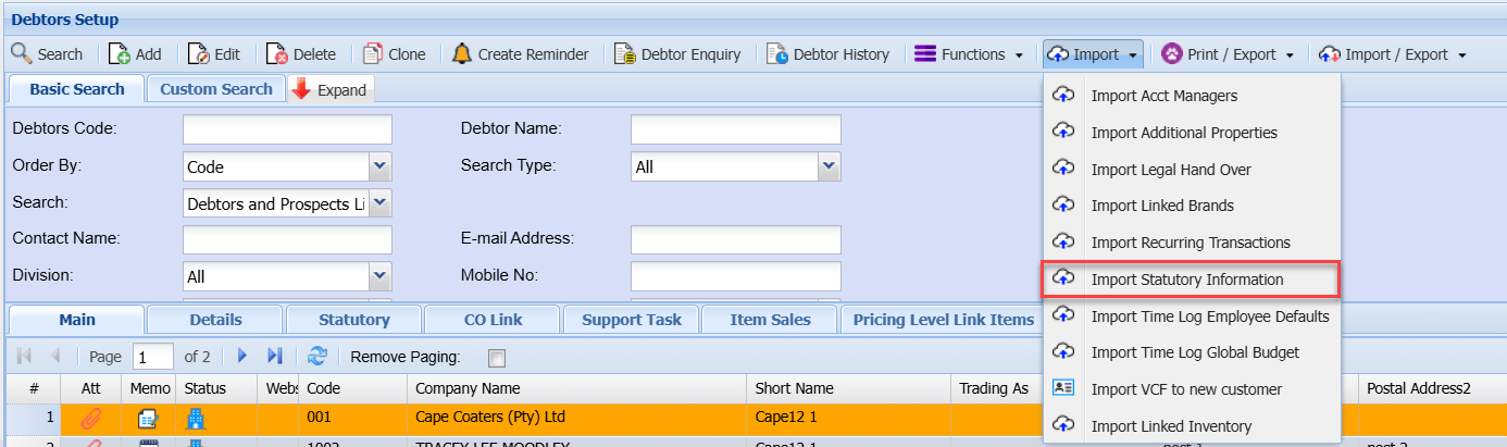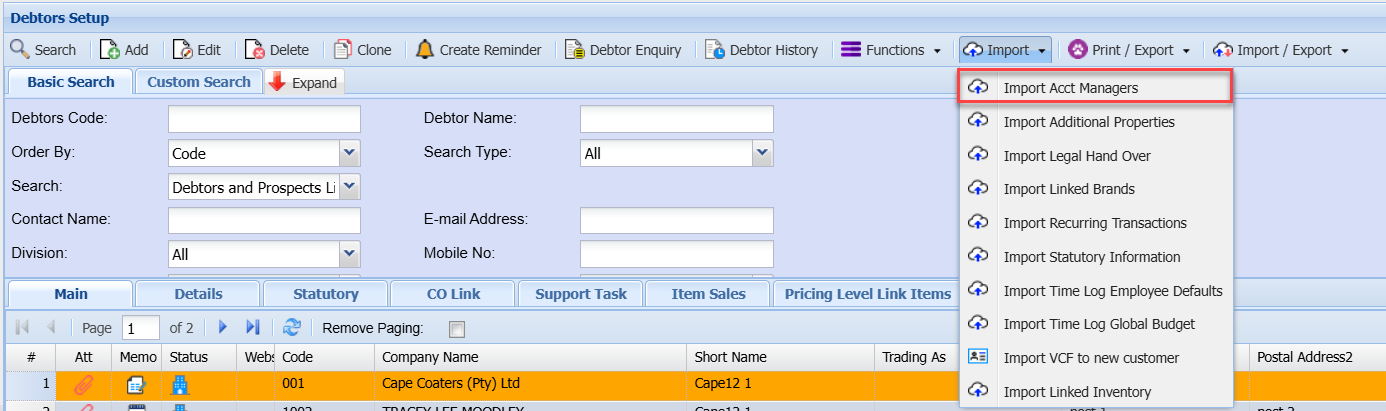Import dropdown is essential for maintaining accurate and up-to-date debtor/customer information.