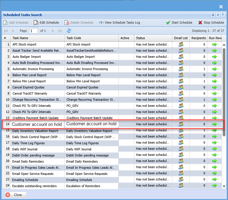 Activate the schedule for Customer account on hold