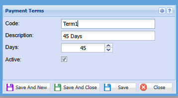 Save and New to add another Payment term