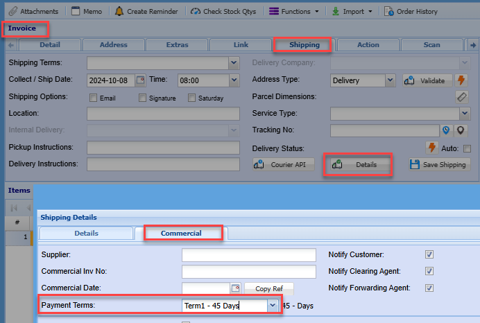 Click the tab Payment Terms