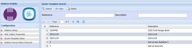 StandardDebtors TabModule> Configuration> Quote Template Setup