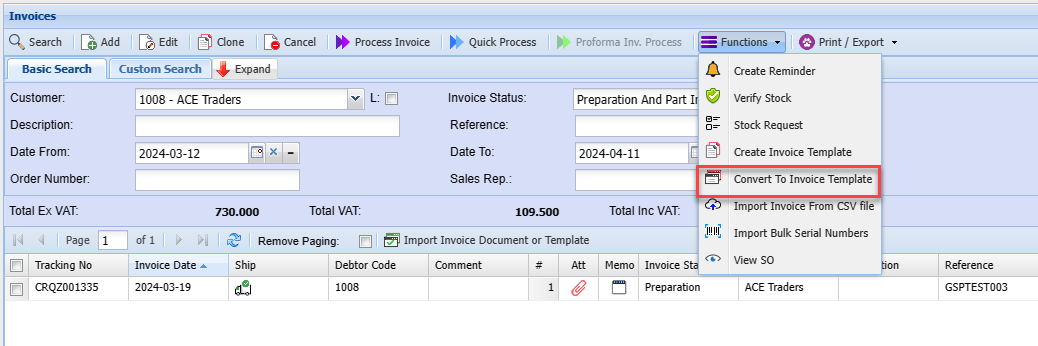 This tab allows you to view a detailed invoice If the invoice is not yet processed you can make changes to the invoice it will allow you to save and close. |