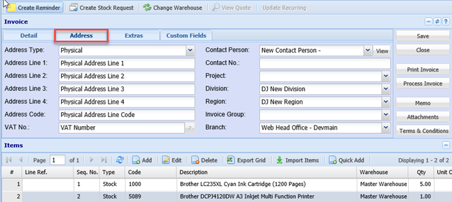 Go to Address tab of document