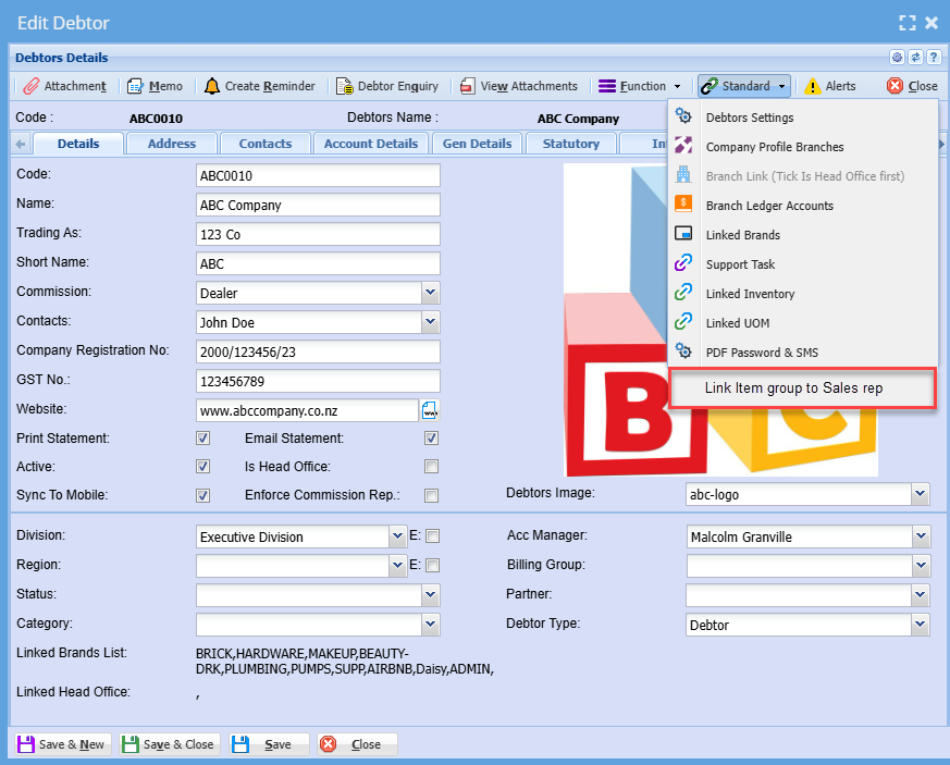Go to the customer to link groups to sales reps