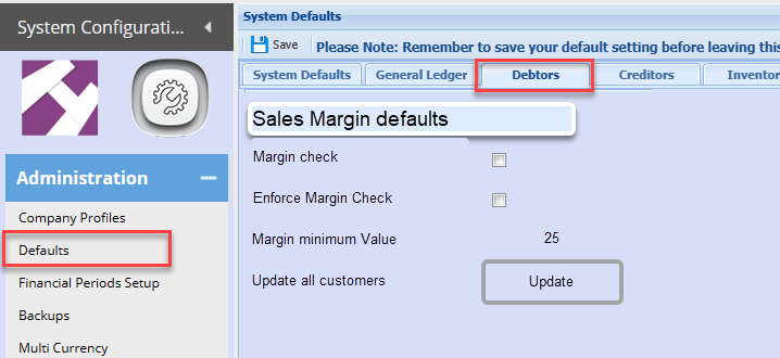Sales Margin Supervisor setup