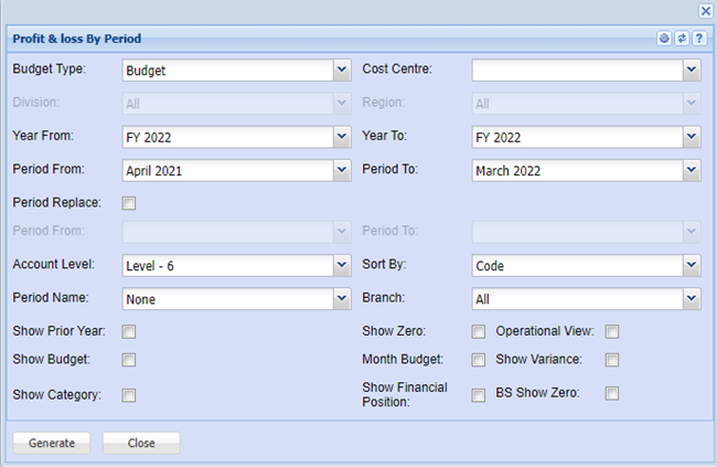 GL Module > Report List > Profit and Loss by Period Report