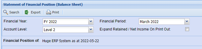 Balance sheet / Financial Position report