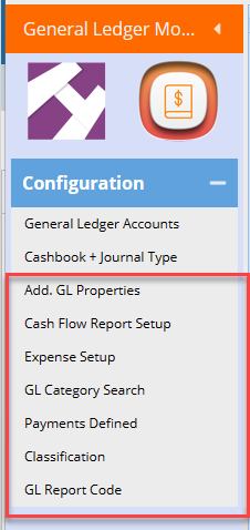 Go to General Ledger Configuration menu group to setup fields