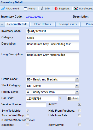 This can then be used in stock procurement, forecasting and even automated exception reports to notify the procurement department of priority items with low stock levels. Refer to advanced item setup