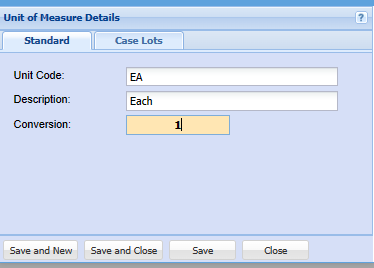 | Delete button | the delete button allows you to remove the currently selected Unit of Measure. |