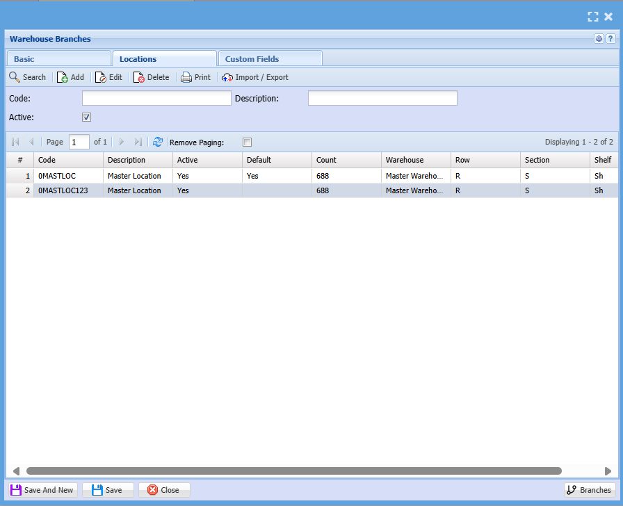 Click on the locations tab and the boxes will display as shown below:
