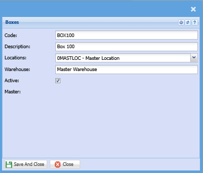 | Delete | The delete button allows you to delete a box as long as there is no movement against it |