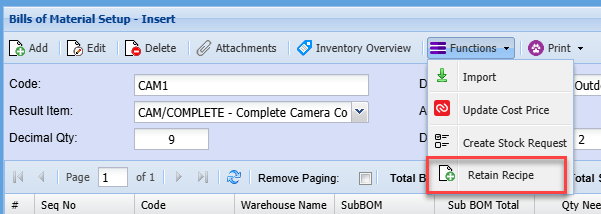 Retain Recipe