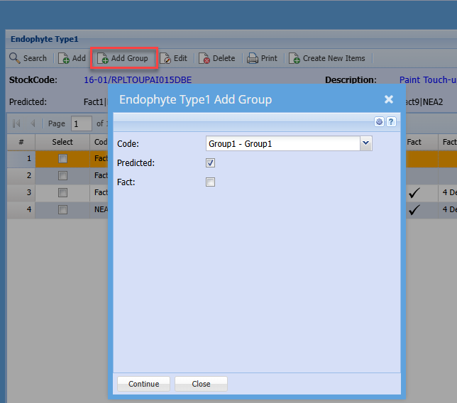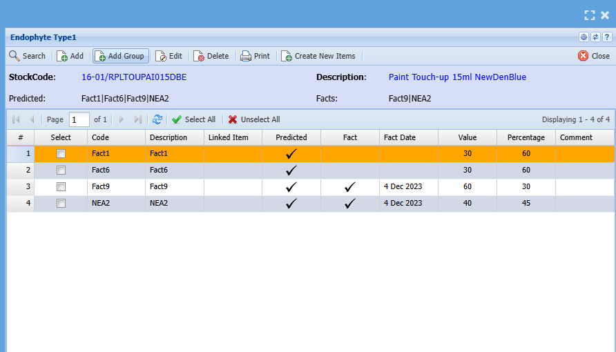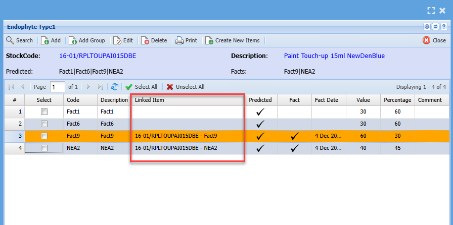 Facts and Predicted Endophytes show up on grid and item setup