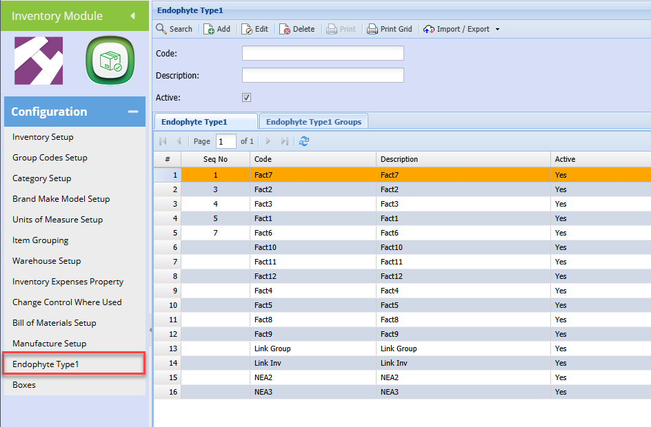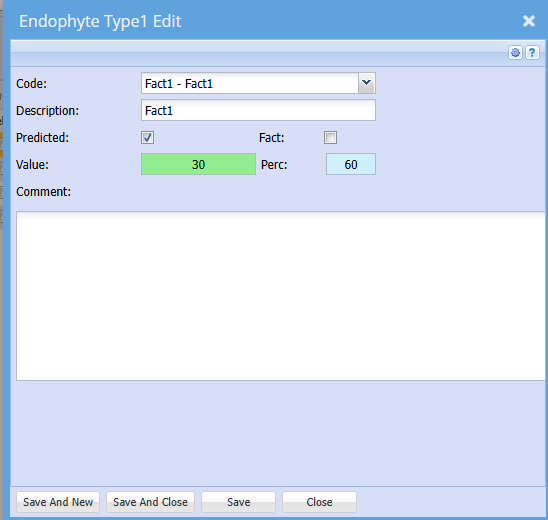 Inventory setup Fact / Endophyte link