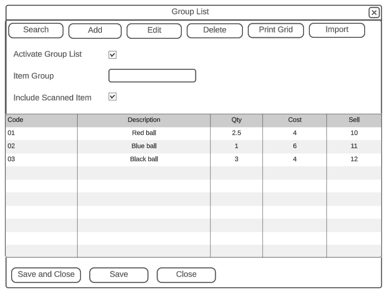 Item Group Populates each line of the group list with the item group