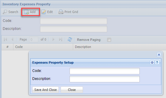 | Search | search for an existing expense property |