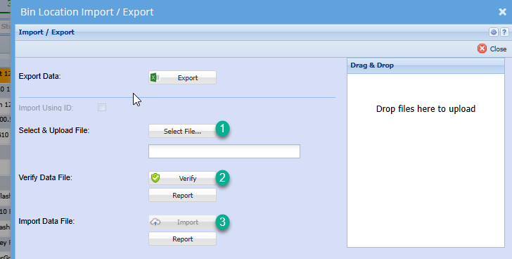 Bin Location Import/ Export