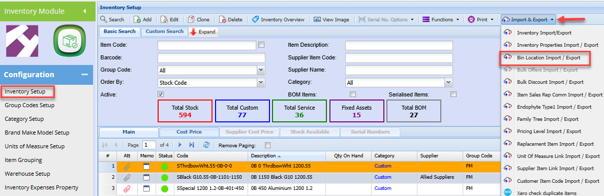 Basic Inventory Import/ Export