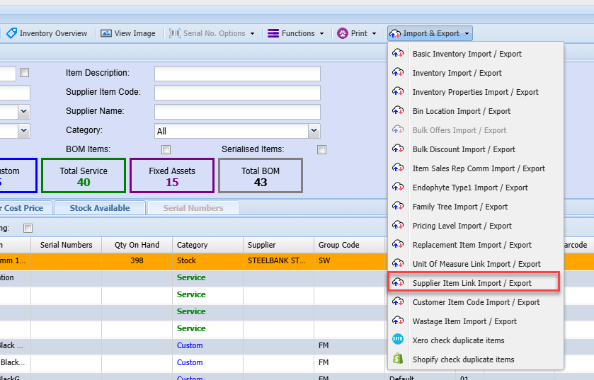 Supplier Item Link Import/ Export
