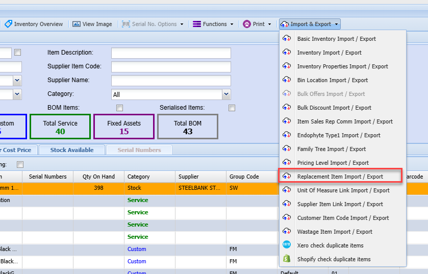 Replacement Item Import/ Export