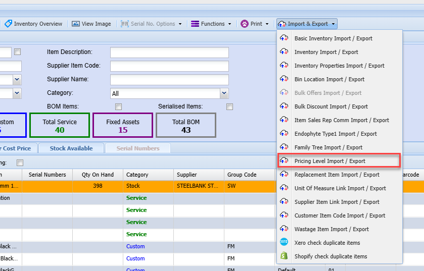 Pricing Level Import/ Export