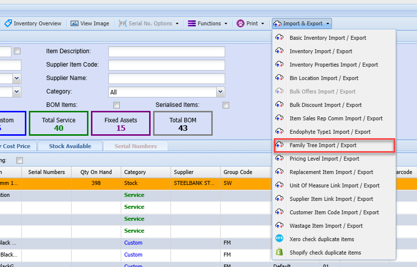 Inventory Import/ Export