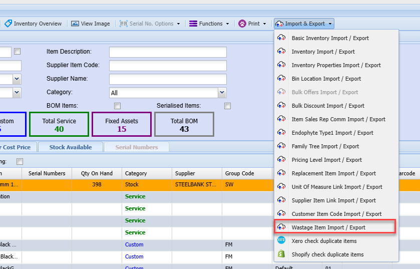 Wastage Item Import/ Export